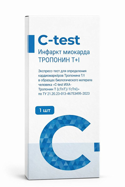 Экспресс-тест для определения кардиомаркёров C-test ИХА-Тропонин T+I (cTnT+cTnI) (1/20/25 шт./уп)